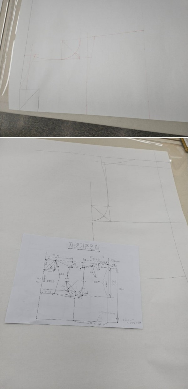 완성해 준 모습이고요. 연습을 하기 위해서 1장 더 그려줬습니다. 패턴 선생님이 모든 수강생을 챙기며 돌아다니시며 잘 그리도록 지도해 주셨어요.
