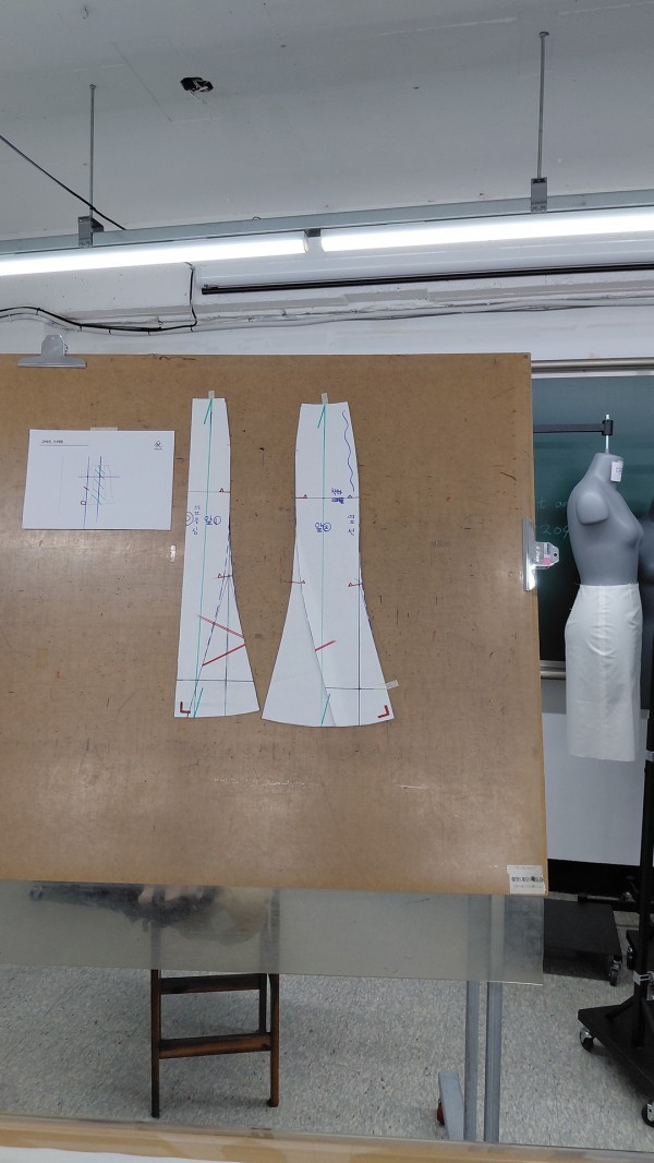 오후에는 조별로 논의하고 개인별로 첨부되지 않은 고어드 스커트를 추가로 제도하였는데,