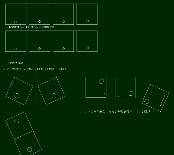 편측수정k, 선자르기c, 선합치기rc, 각결정km