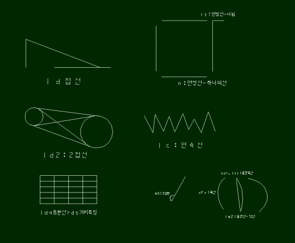 연장선n, 접선 ld/ld2, 연속선 lc, 등분선ldq