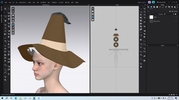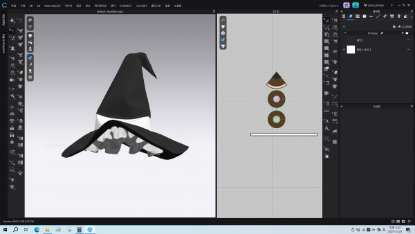 겹패턴 바깥쪽으로하면 2D패턴 창 위쪽으로 배치, 안쪽은 아랫쪽 배치 (우리 수업 시 유지)