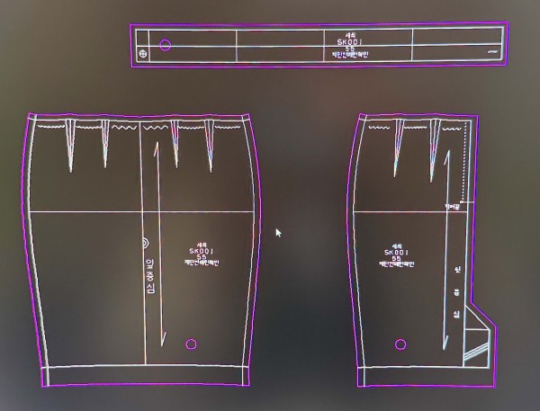 강사님의 친절한 가이드에 따라 단추키를 누르고 선을 긋다보니 어느새 화면에는 책에 나와있는 스커트 패턴이 완성되어 있었습니다.