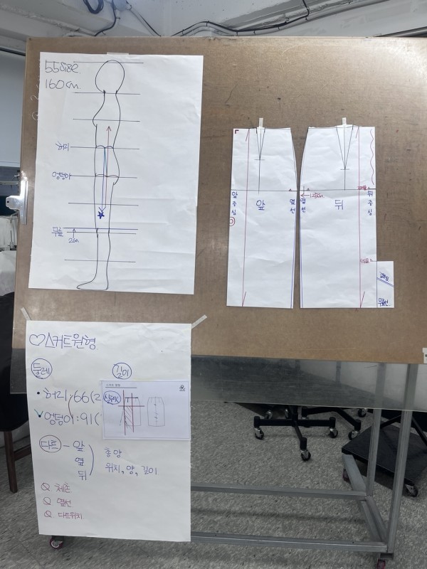 수패턴 제도와 봉제 작업을 할 수 있는 시설이 있었고, 수패턴을 제도한 뒤 가봉 작업까지 하게 된다고 합니다.