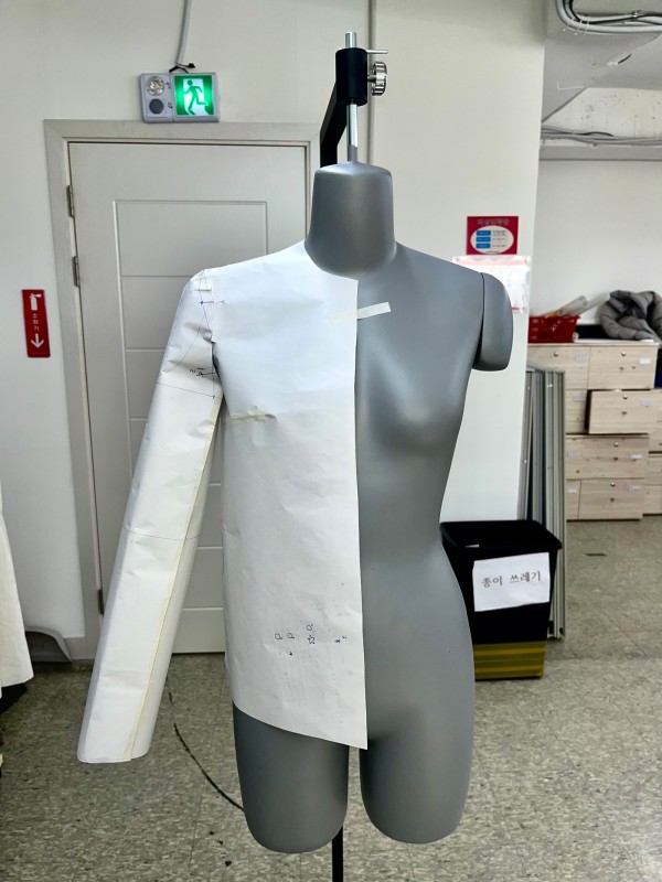 종이가봉을 하여 마네킹에 입히고 실루엣을 관찰도 해보았습니다.