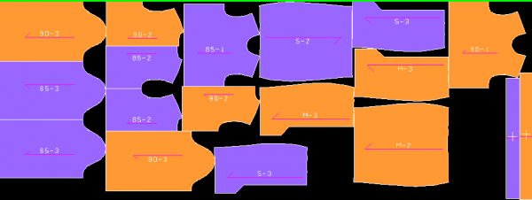 대화배치에서는 패턴을 자유롭게 배치할 수 있으나, 원단 소요량을 최대한 줄이기 위하여 뺴곡히 배치하는것이 중요합니다.