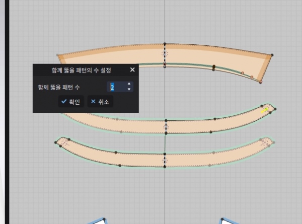 (곡선점이 많은 경우, 곡선점들이 힘을 받아서 카라가 구불거리게 나왔습니다.)