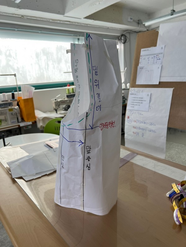 스커트에는 없던 밑위라는 개념을 이해하며 바지 패턴에 필요한 선분들이 어떠한 형태로 나타내져야 하는지 생각해 보는 시간이 되었고,