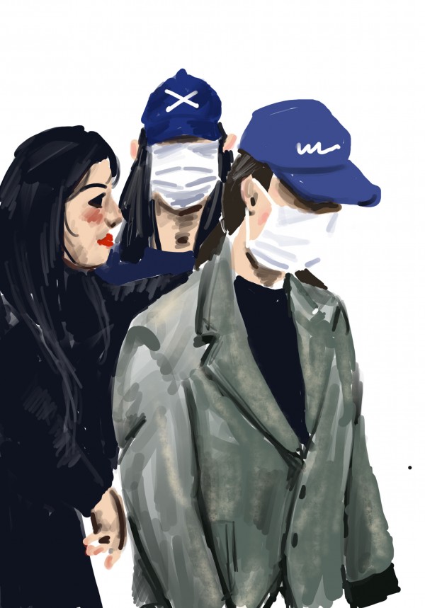 어떤 학생 둘은 직접 자켓을 입어보고 채촌을 하고 있었습니다.