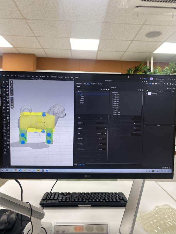 오늘은 강아지 몸에 맞는 배치판을 만들어서 배치 포인트를 심는 법을 배웠다. 작은 몸에 생각보다 많은 포인트가 들어가는게 신기했다. 강아지한테 옷을 입혀봤는데 예쁜 모양이 잘안나와서 계속 만져주는 노력이 필요했다. clo가 이번에 업데이트를 해서 ai기술을 활용한 여러 기능들과 데님에 워싱기술을 넣을 수 있는 등의 기술들이 생겼다. 아직 제대로 활용은 못해봤지만 유용한 기능인거 같다. 시접 넣는법과 원가 계산하는 유용한 법을 배웠다.