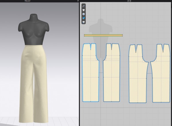 캐드로 와이드 팬츠와 정장 바지를 제도해서 클로에서 작업해보았습니다.