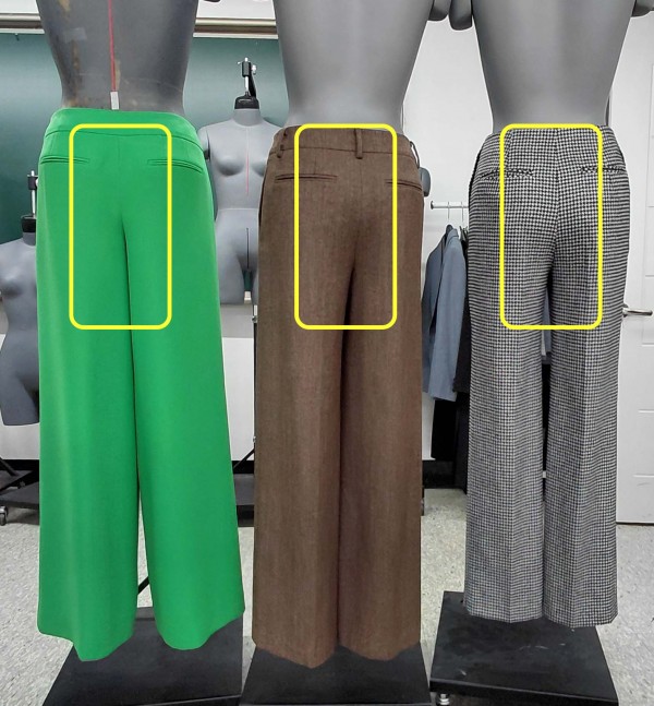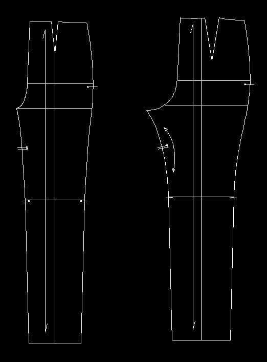 엉덩이라인에서 툭 떨어지는 와이드팬츠와 달리 보다 인체의 실루엣이 들어나고 밑폭이 좁아진 정장바지를 제도해보며 인심과 옆선에 곡선들이 생겨나는 것을 확인할 수 있었습니다.