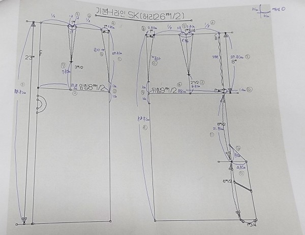 첫수업에서는 H라인, A라인, 항아리 스커트의 패턴을 그려봤어요.