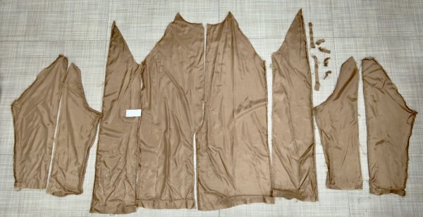 친구와 함께 2인 1조로 트렌치 코트를 분해했습니다.