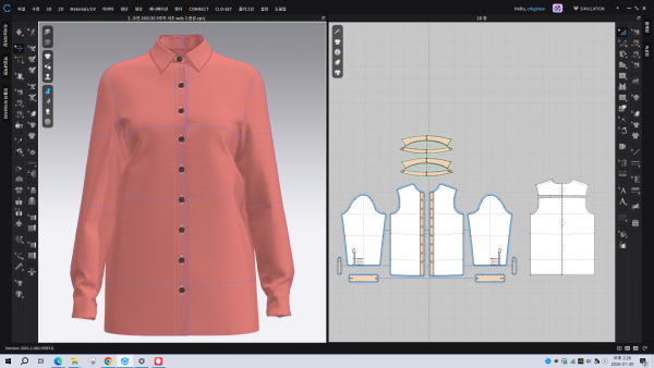 6.아바타에 배치, 단작 배치시 왼쪽을 (마주본 방향_아바타방향에선 오른쪽)반대편보다 위로 오도록 배치하여 단추가 오른쪽(아바타방향 왼쪽)에 달리게 만든다.