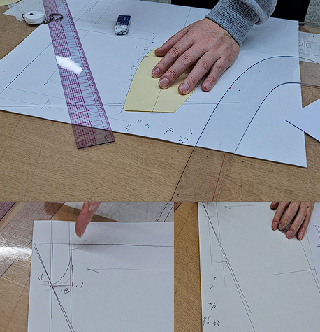 테일러드카라 뒷판, 앞판 패터을 배웠습니다. 뒷판을 그리기 전에 옷의 핏 활동여유분에 대한 이야기를 해주셨는데