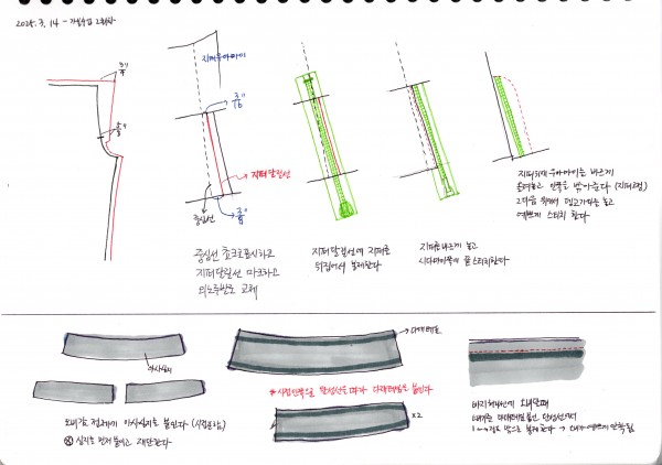 *봉제-뒤판 다트박기-앞판 레지기선잡기-앞뒤바지단 꺽기-앞판 주머니박기-앞뒤판 옆선박기-
