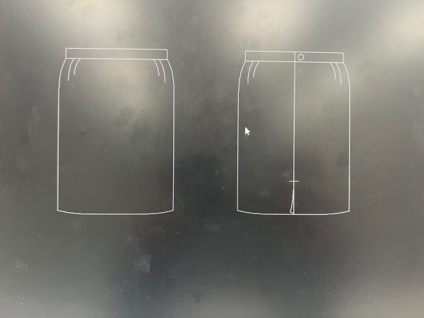 허리단, 단추, 다트, 스티치, 실선, 패턴기호들과 더불어 패턴에 정보를 기입할 수 있는 문자값을 입력하는 방법까지 배워볼 수 있었습니다.