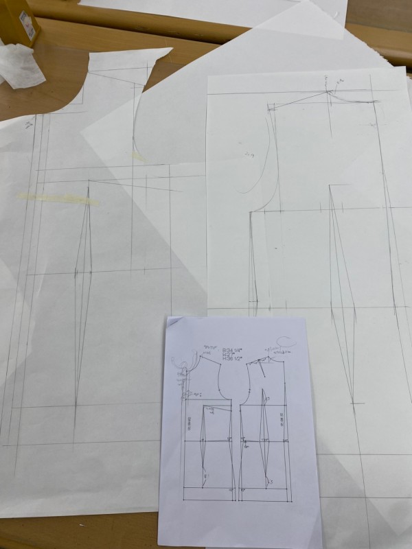 오늘은 원형 자켓을 복습하면서 수업을 시작했다. 확실히 계속해서 원형을 그려보니 손에 익는게 느껴졌다. 자를 가지고 선을 한번에 쓱 그을 때 나는 소리를 오늘 느낀거 같다. 모델 리스트 수업을 듣기 전에는 자를 사용하는게 어려웠어서 자신감이 없었는데 지금은 자를 어떻게 사용해야 하는지 감이 오는게 신기하다. 강사님도 선이 많이 좋아졌다고 하셨다.