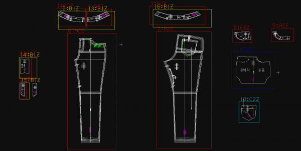 상의 원형에 경우, 커트지가 몸판에만 들어간다고 가정하면, 몸판과 소매부분을 나눠서 배치를 진행해야한다. -> '복사-소재변경'을 활용하여 서로 배치를 다른 방으로 옮길 수 있다.