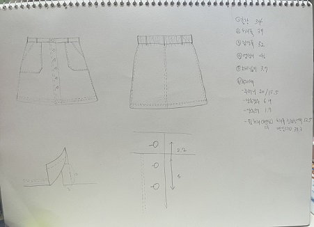 오늘은 지난 시간 셔츠에 이어 스커트를 뜯고 구조를 이해하며 작업지시서 완성의 시간..