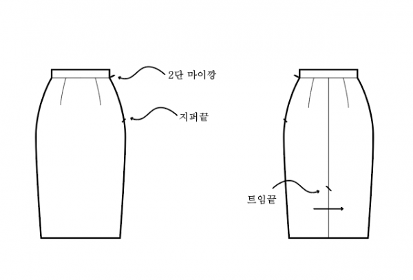 패션인체를 그렸으면 패션 도식화를 그려야겠죠? 먼저 타이트 스커트를 그려보도록 해요.