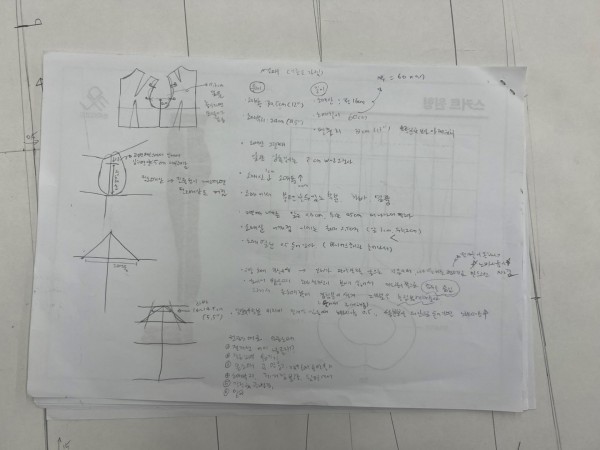 한장소매를 먼저 제도하고 두장소매로 변형하는 법을 배웠다.