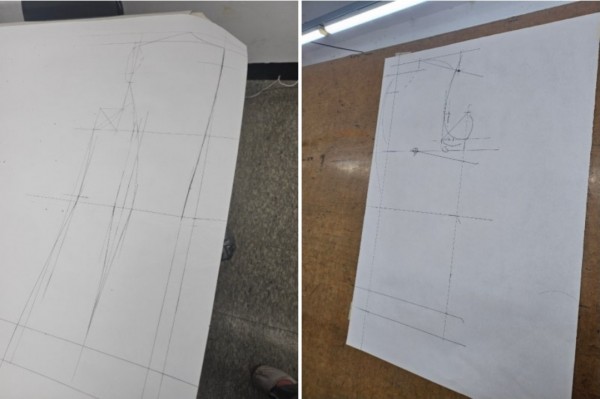여기서 곡자를 쓸 때 0.2cm 띄어서 기준점을 잡아주고 선을 그은뒤 그 부분을 반대 편 자를 이용해 곡선으로 채워주는 스킬이 많았어요. 그래서 조금 어렵게 느껴졌지만 화이팅하며 마무리 해봤어요!