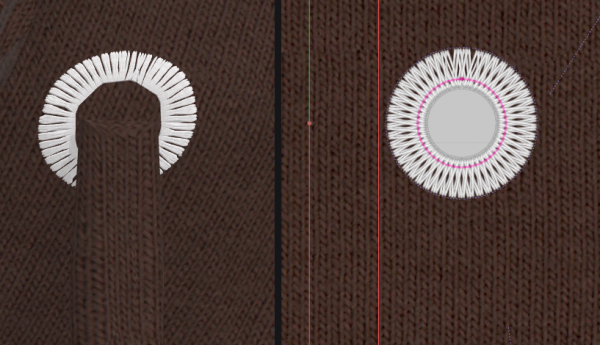 바텍과 속성창의 모서리 곡면으로 처리로 통해서 스트링 구멍에 스티치 작업을 했습니다.