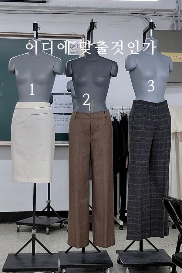 스커트와 달리 팬츠는 앉았을 때 뒤가 내려가는 부분과 착용시 생길 수 있는 착용감에 따른 요청들에 대해 생각해보고,