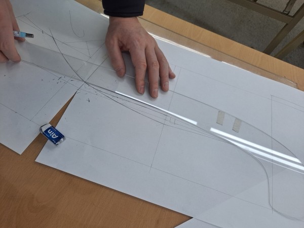 원형은 지난주의 복습이라 무난하게 그릴 수 있었지만, 앞 뒤판 사이바가 들어가는 부분에서 자연스러운 곡선을 만들어주는 것이