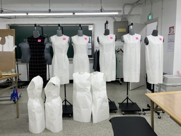 강사님께서 준비해오신 광목 가봉과 종이 가봉의 차이도 비교해볼 수 있었는데, 종이로 가봉한 건 특히나 옆에서 봤을 때 그 차이가 더 잘 보였습니다.