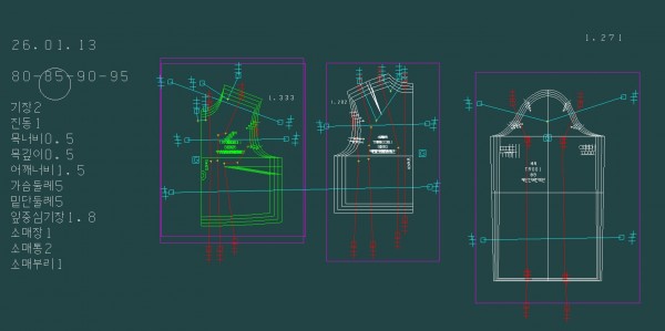오늘은 수패턴을 디지타이저에서 입력하고 캐드로 옮겨와 패턴을 보정하는 것을 배웠습니다. 좀 시간이 오래 지났지만 학교에서 디지타이징 하는 법을 배워서 그때 기억을 떠올리며 수업을 들었던 것 같습니다. 강사님께서 주신 자켓 패턴을 가지고 패턴을 입력 할 때부터 배치를 신경써야 하고 패턴 보정할 때 어디를 어떻게 수정하는 게 좋을지 알게 되었습니다. 처음 패턴을 제도할 때 나온 단축키들이 종종 나와서 그 단축키들을 한 번 더 공부하면서 패턴을 수정했던 것 같았습니다. 오후에는 상의 앞중심 길이의 편차가 있을 경우 달라지는 편차의 양에 대해서 공부를 했습니다. 초반에는 아무리 설명을 들어도 이해가 안갔었는데 주변 학생들과 강사님의 쉬운 풀이로 이해 할 수 있었습니다. 특히 승모근 때문에 옆목점이 올라가도록 편차를 주는 것에 대한 그레이딩도 해봤습니다. 블라우스 그레이딩도 해봤는데 확실히 오늘이 상의 그레이딩 2일차라서 원리를 이해하는데에 더 수월했던 것 같습니다. 앞으로 까먹지 않게 연습을 해야 할 것 같습니다ㅎㅎ