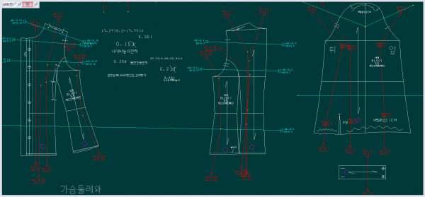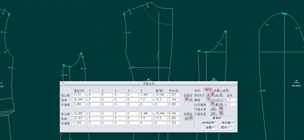- 카라 절개선엔 앞네크와 뒤네크의 GXY단차값을 그대로 넣어줌 값이 같아야 합복될 수 있으니 그대로 넣음 그리고 골패턴이니 절개선 선반전해주기