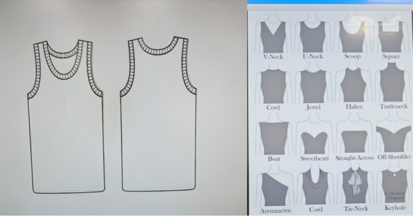 러닝도식화의 기본라인, 목라인, 겨드랑이 부분의 스티치, 어깨의 랍바 그리는 법을 알려주셨습니다.