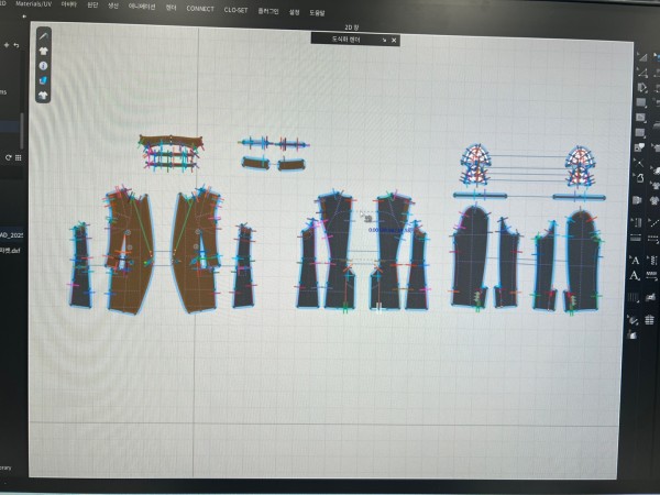 어깨부분에 패드랑 마꾸라지가 들어가서 충돌이 있어서 자꾸 밖으로 나오려고하면 2D창에서 원단을 위아래를 지정해주는 단축키가 있다.
