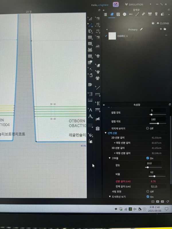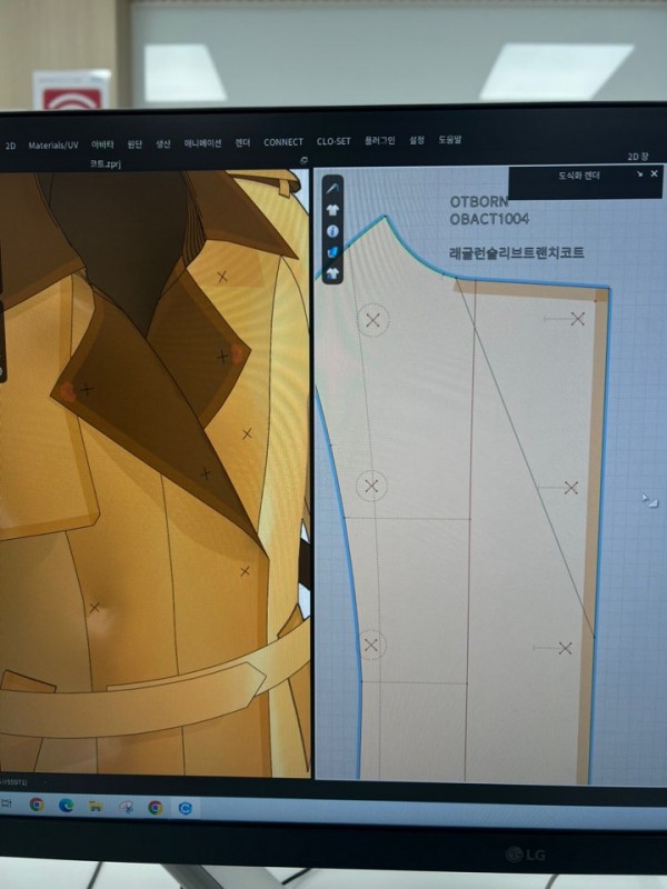 트랜치코트 카라밴드에는 내부선분을 5개 정도 넣어준다.