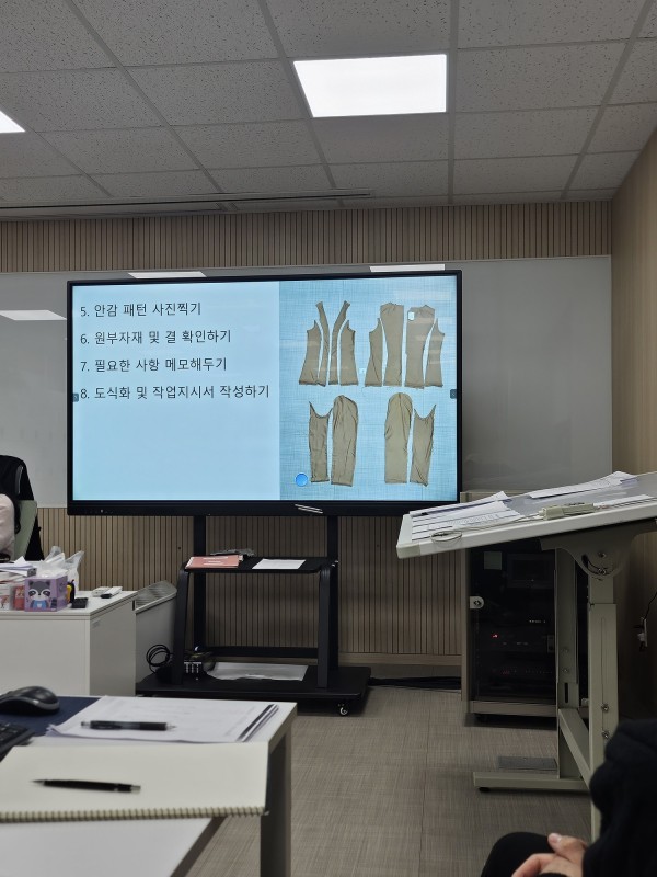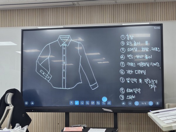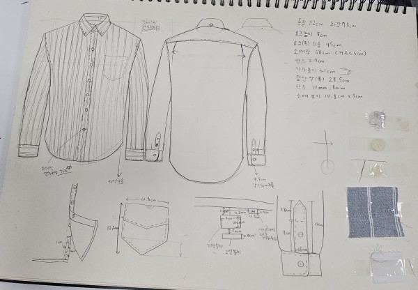 오늘 체크해야할 사이즈와 부분의 명칭, 설명을 듣고 줄자로 사이즈를 재기 시작했다. 셔츠의 사이즈를 재고, 마네킹에 입혀 사진을 찍고 작업지시서에 사진을 보고 그리라고 하셨다. 마네킹에 셔츠를 올바르게 입혀 사진 찍는 법 부터 뜯는 방법과 순서까지 정갈하게 알려주셨다. 예시로 자켓의 안감을 뜯는 것을 사진 자료로 보여주셨는데, 안감은 재킷보다 여유분이 있다고 알려주셨다. 다음 시간에는 스커트, 그 다음주는 바지를 한다고 하셨는데 기대된다. 옷 뜯기는 생각보다 시간이 걸리지만 재밌는 옷의 구조를 샅샅히 알 수 있는 재미있는 작업이다.