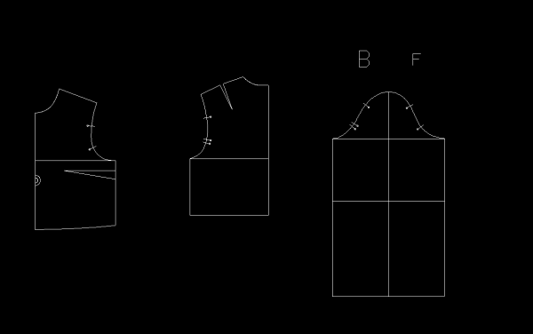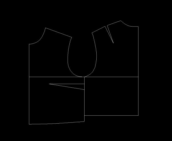 ● 제도 전 도식화를 보고 어떤 옷인지 파악을 먼저 하고 제도하는 것이 편하다. (앞처짐이 있는 것을 확인)