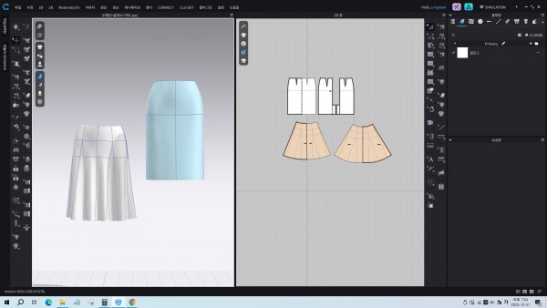오후에는 H라인 스커트를 불러와 기존 패턴을 수정하고, 봉재하여 시물레이션해보았습니다.