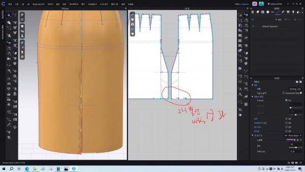 3D CLO에서 커스텀앵글과 턴드에 대해 복습하고, 개별두께와 표면두께의 차이, 메쉬등 시물레이션할 때의 주의점을 확인하고