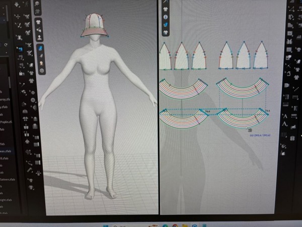 9.챙 한겹씩 더 ctrl D로 / 같이 겹쳐주는 조각끼리 재봉하는 선은 제거 후 양방향 잇기