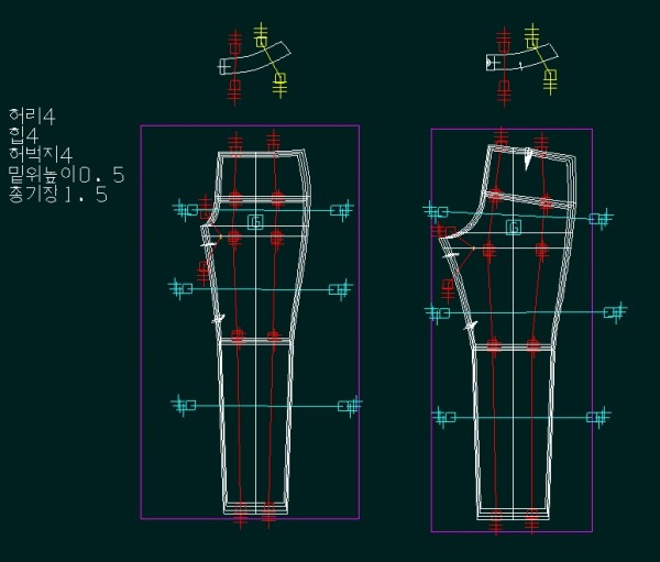 *영역을 잡고 둘레 편차를 주는 빨간색 절개선, 기장 편차를 주는 파란색 절개선안에 들어가게끔 기준선을 지시해야 한다.