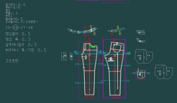 바지 부속 패턴 그레이딩