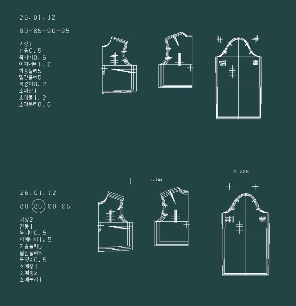 *그레이딩 한 후 폭과 기장이 달라진 패턴들은 수정을 꼭 해줘야 한다.