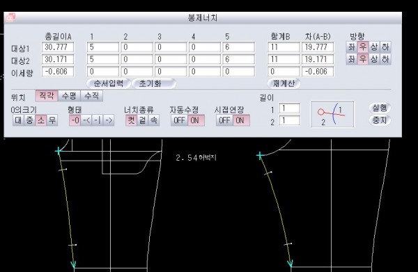 보라색부터 시계방향으로 돌면서. 시접양이 달라지는 끝부분 클릭하고 시접양 시정