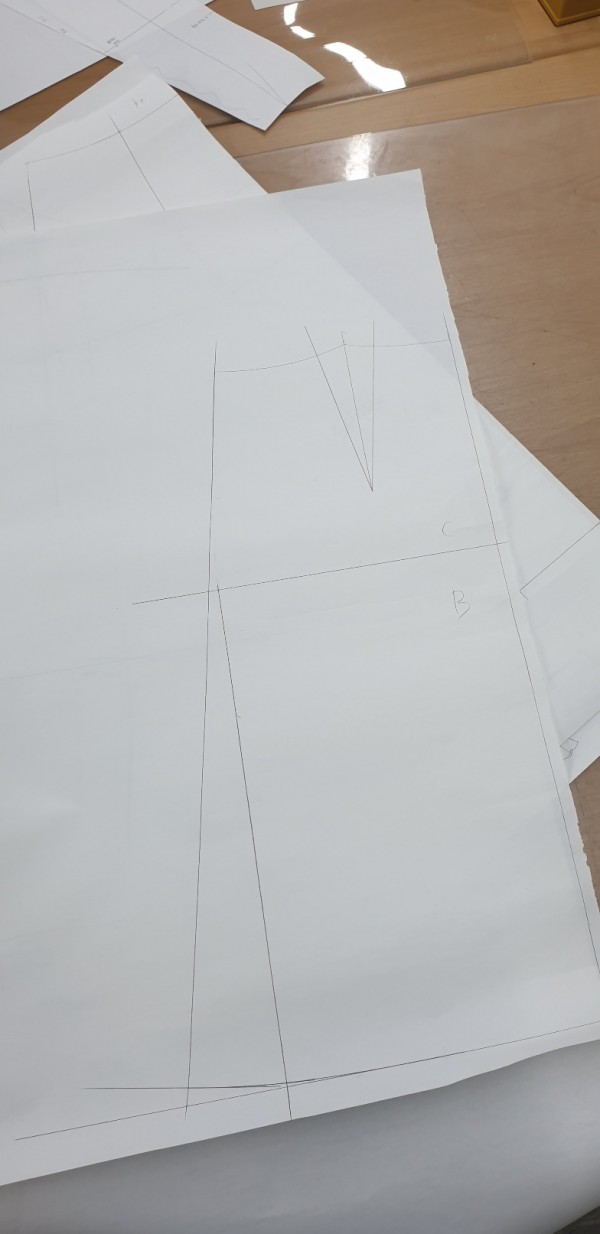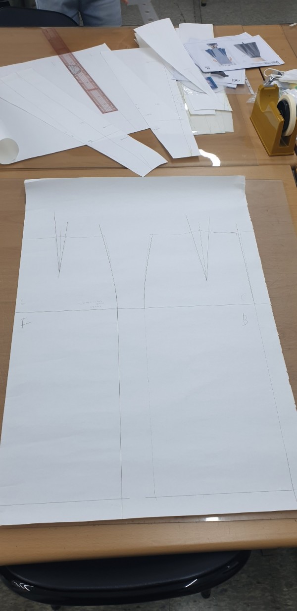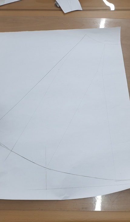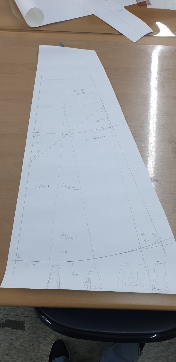-저번 주에 제도한 스커트 원형의 다트량을 옆선과 뒷중심에 분산 했습니다.