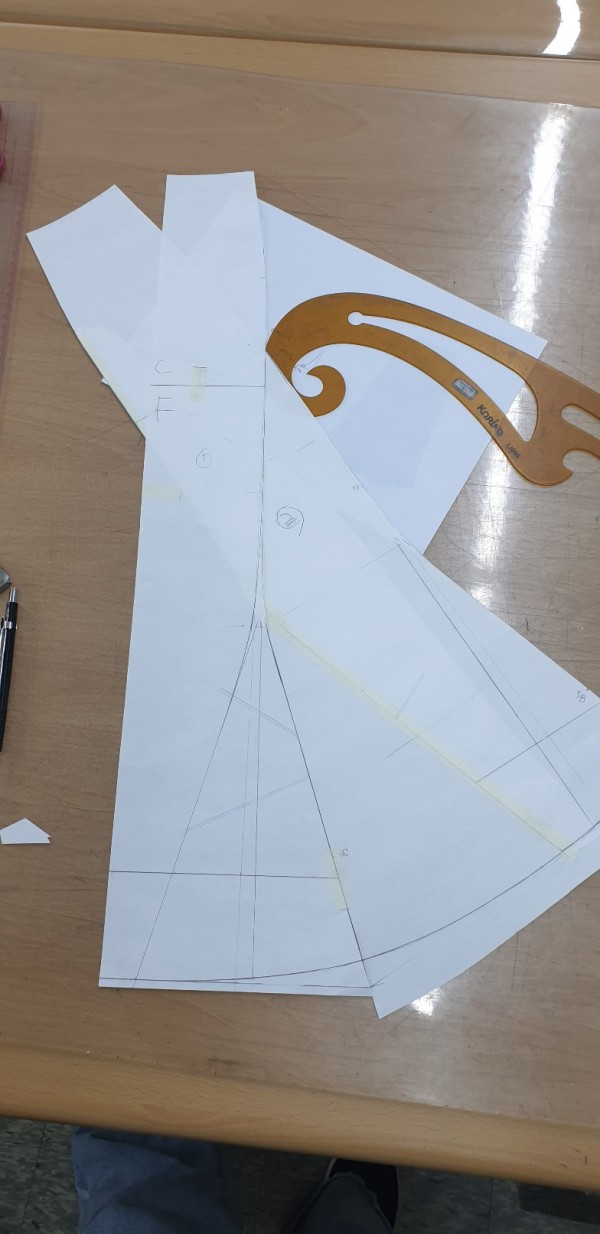 -절개선을 넣어 다트를 없애고, 무를 제도,