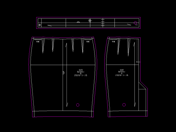 바지에 필요한 부속과 너치를 입력하였고, 길이 측정을 통해 완성 사이즈를 확인하며 작업하였습니다.