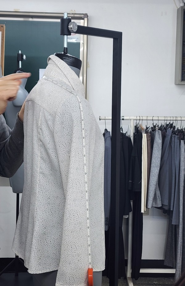 오늘은 셔츠를 마네킹에 입히고 직접 사이즈를 재어보고 패턴을 그리는 연습을 했어요.