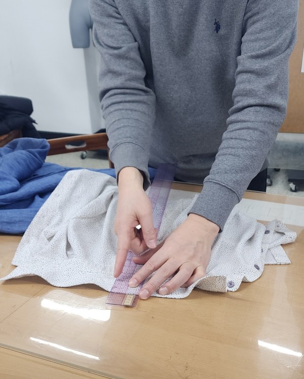 직접 사이즈를 재어보면서 하는건 처음이라서 선생님께서 셔츠사이즈를 재는 법도 상세히 알려주었어요.추가로 바지사이즈 재는법도 알려주시고.